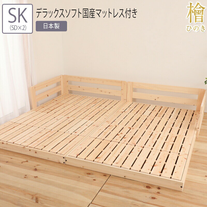 送料無料 ベッド スーパーキング(セミダブル×2) SK(SD×2) デラックスソフト国産マットレス付き 川の字ヒノキベッド 連結 ヒノキ 檜 ベッド すのこベッド スノコ 頑丈 フロアベッド ローベッド ベッドフレーム シンプル おしゃれ