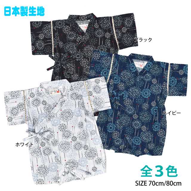 ○ カラーバリエーション ○ホワイトネイビーブラック甚平 ベビー甚平 子供甚平 花火 はなび 総柄 和柄 綿100% 男の子甚平 お祭り ロンパース スナップ付○ 【ゆうパケット送料無料】甚平 ベビー 男の子 日本製生地 花火柄 ロンパース 綿100%☆