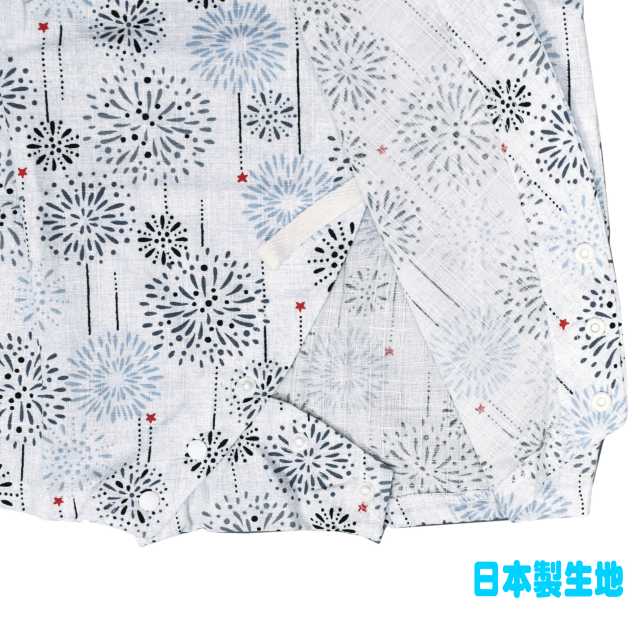 日本製の生地・ホック使用、サザンクロス地 花火柄甚平ロンパースです。